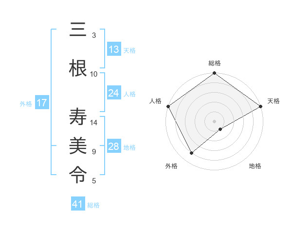 三根 寿美令さんの総格は41画の5点!