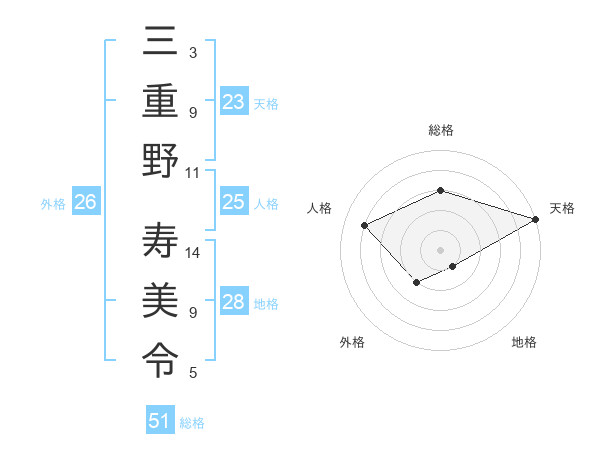 三重野 寿美令さんを姓名の画数から五運を鑑定