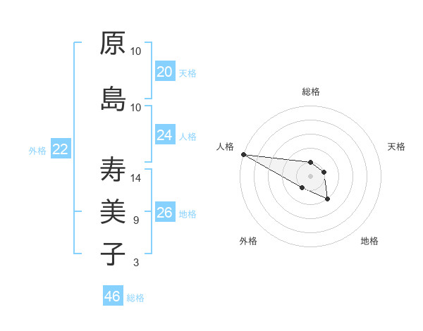 原島 寿美子さんを姓名の画数から五運を鑑定