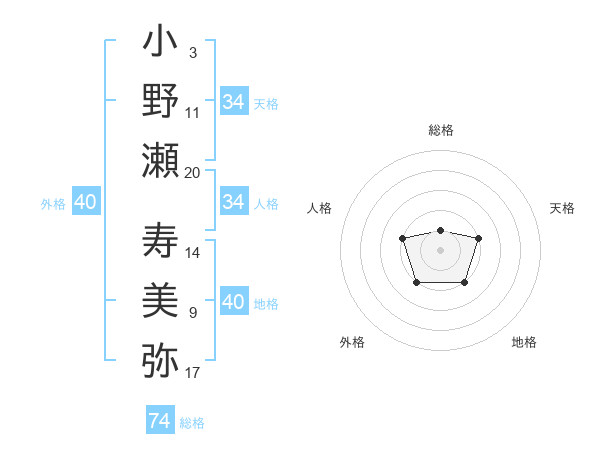 小野瀬 寿美弥さんを姓名の画数から五運を鑑定