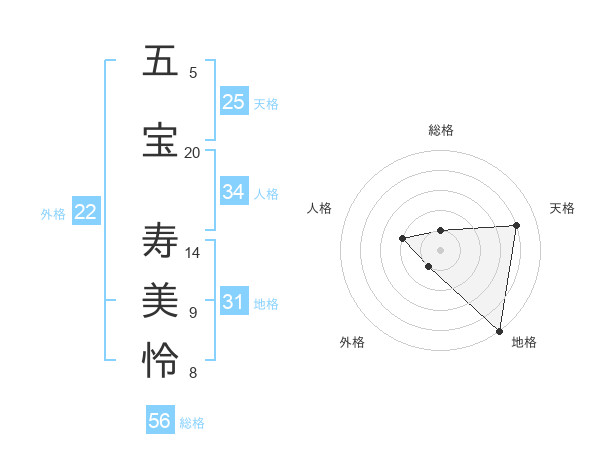 五宝 寿美怜さんの地格は31画の5点!