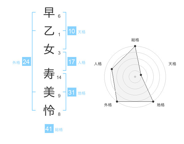 早乙女 寿美怜さんを姓名の画数から五運を鑑定