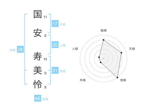 国安 寿美怜さんを姓名の画数から五運を鑑定