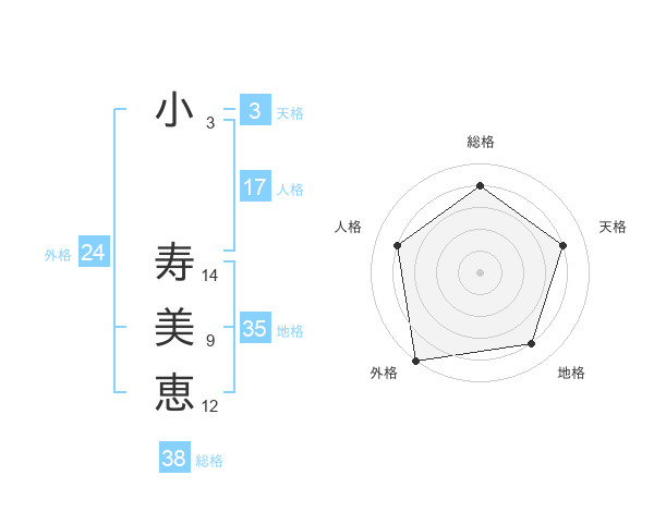 小 寿美恵さんの総格は38画の4点!