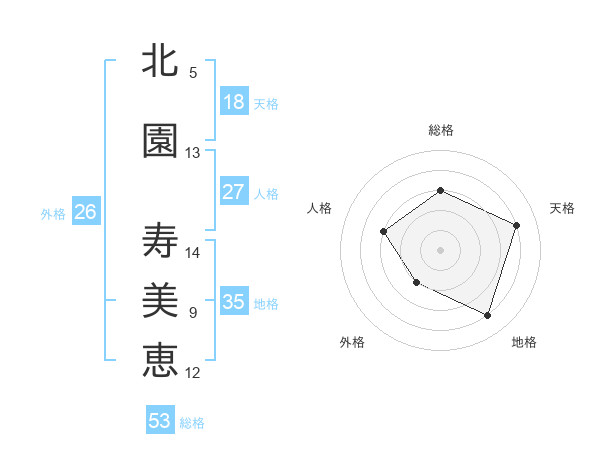 北園 寿美恵さんの総格は53画の3点!