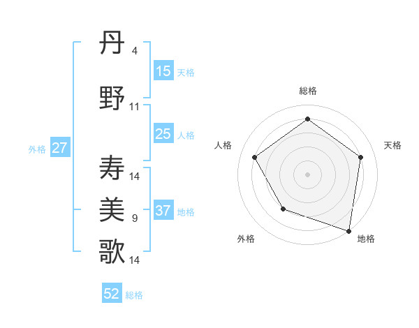 丹野 寿美歌さんを姓名の画数から五運を鑑定