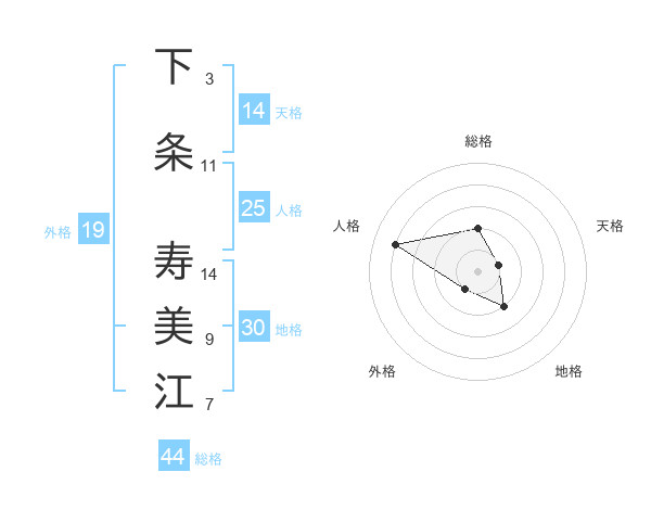 下条 寿美江さんの天格は14画の1点!