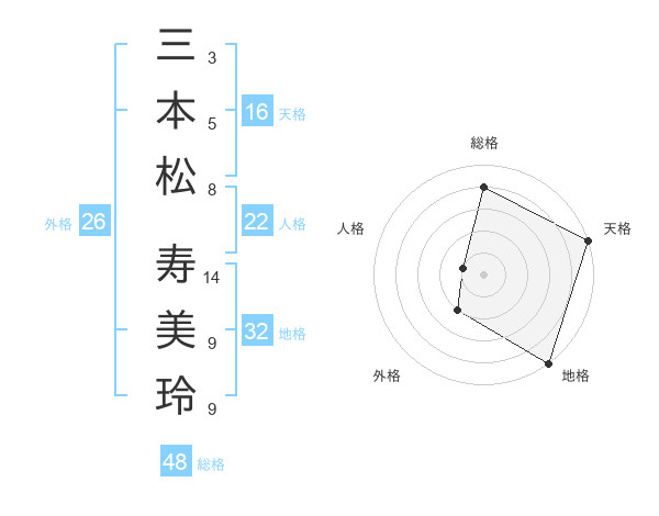 三本松 寿美玲さんの天格は16画の5点!