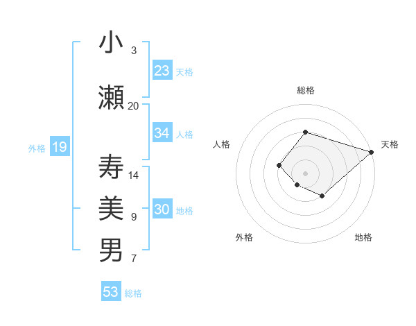 小瀬 寿美男さんの総格は53画の3点!