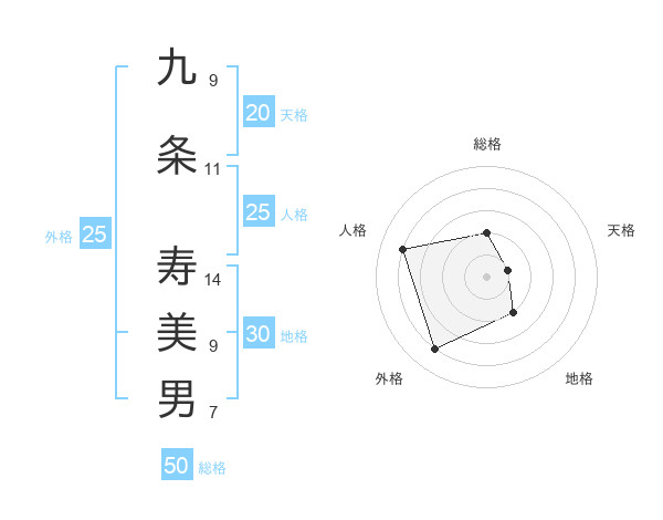 九条 寿美男さんの総格は50画の2点!