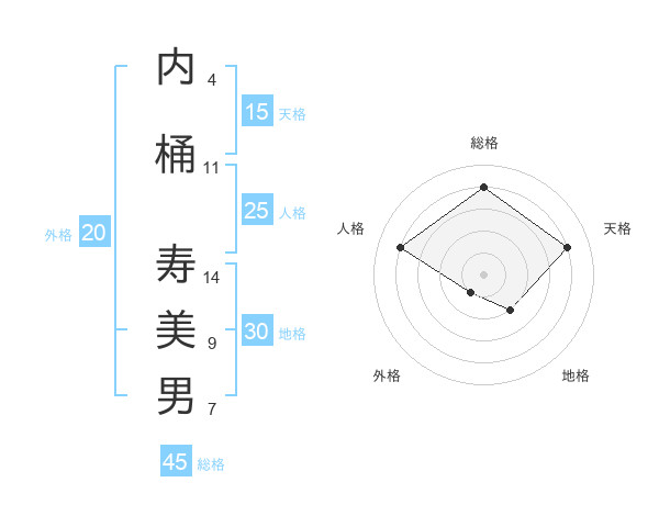 内桶 寿美男さんの総格は45画の4点!