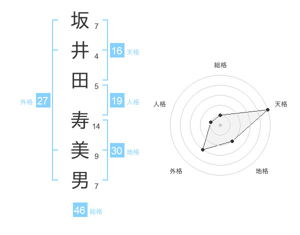 坂井田 寿美男さんを姓名の画数から五運を鑑定