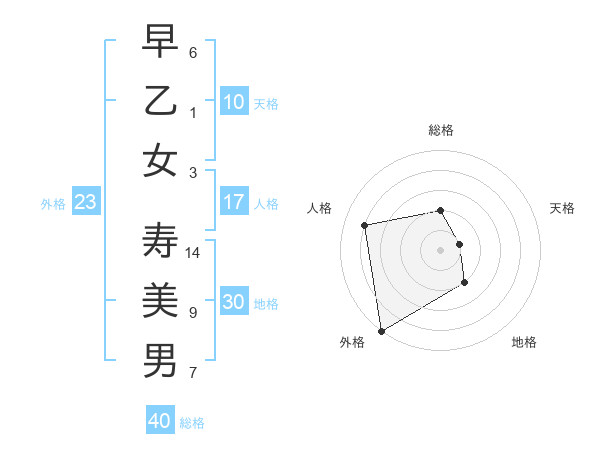 早乙女 寿美男さんの外格は23画の5点!