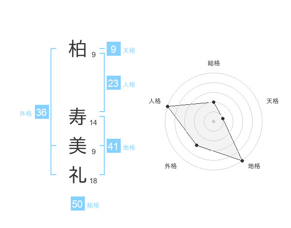 柏 寿美礼さんの総格は50画の2点!