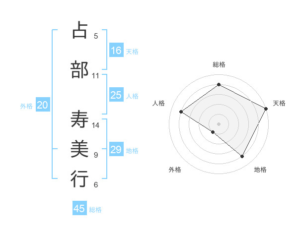 占部 寿美行さんを姓名の画数から五運を鑑定