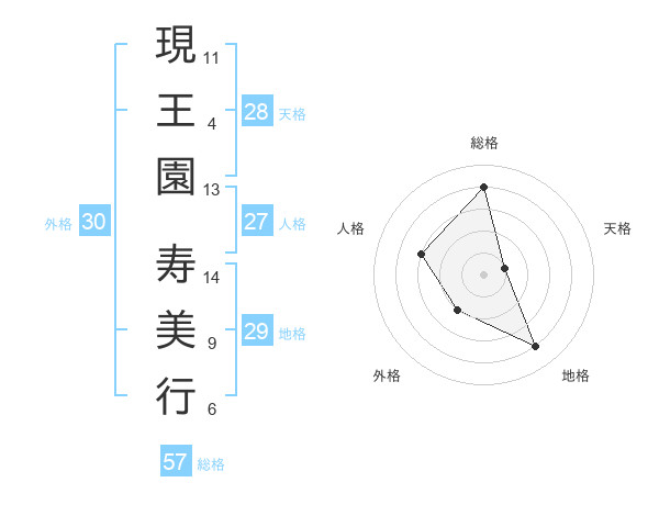 現王園 寿美行さんの総格は57画の4点!