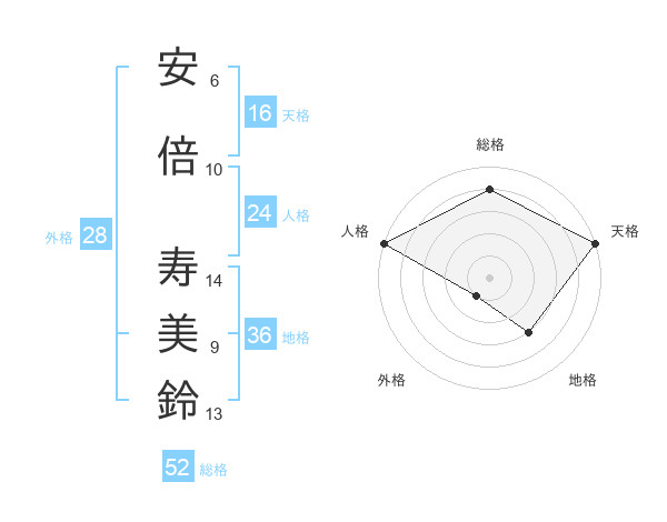安倍 寿美鈴さんの天格は16画の5点!