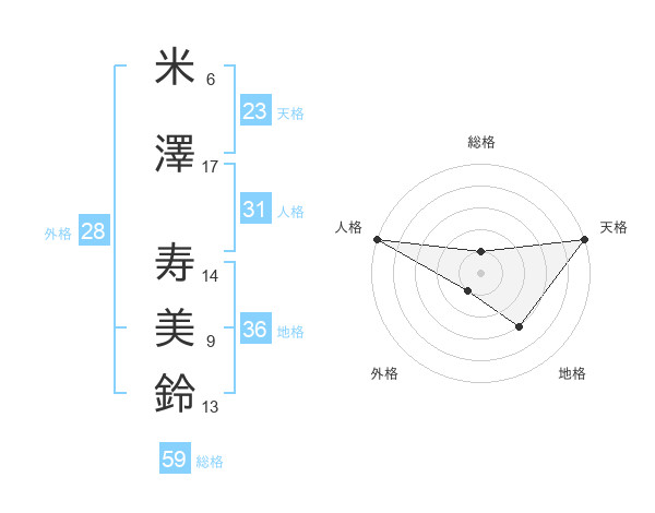 米澤 寿美鈴さんを姓名の画数から五運を鑑定
