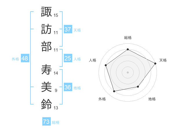 諏訪部 寿美鈴さんの総格は73画の4点!