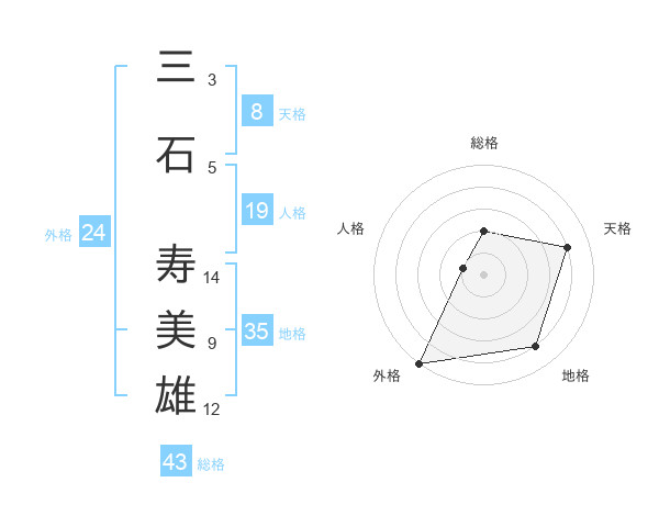 三石 寿美雄さんを姓名の画数から五運を鑑定