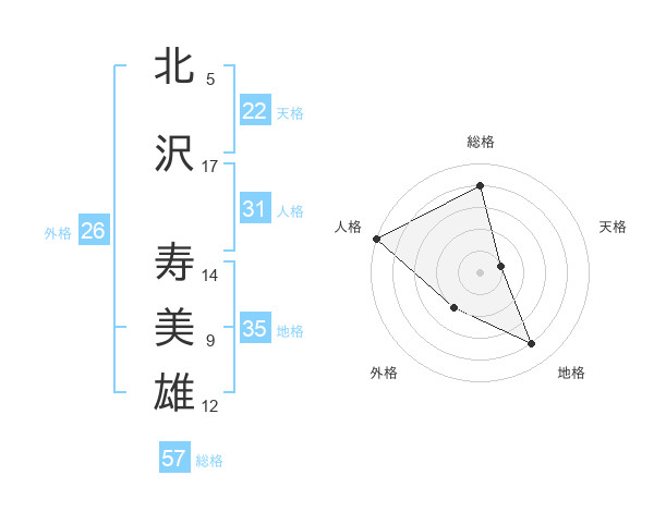 北沢 寿美雄さんを姓名の画数から五運を鑑定