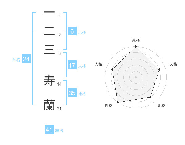 一二三 寿蘭さんの総格は41画の5点!