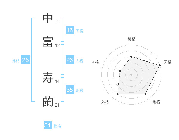 中富 寿蘭さんの総格は51画の3点!