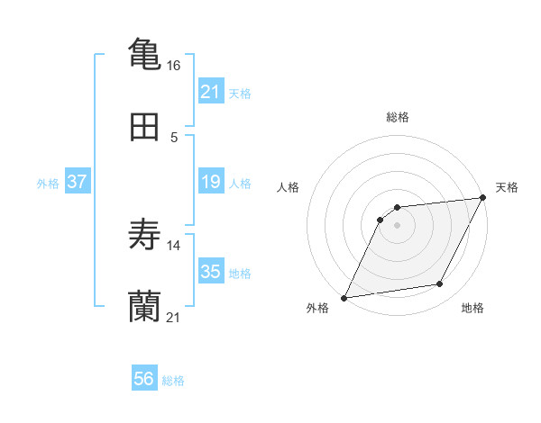 亀田 寿蘭さんの外格は37画の5点!