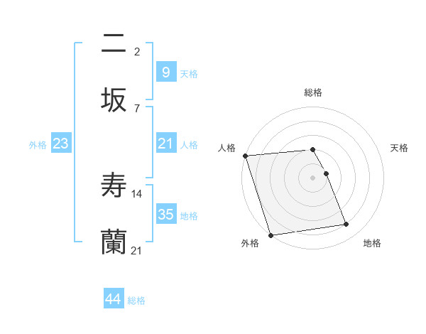 二坂 寿蘭さんを姓名の画数から五運を鑑定