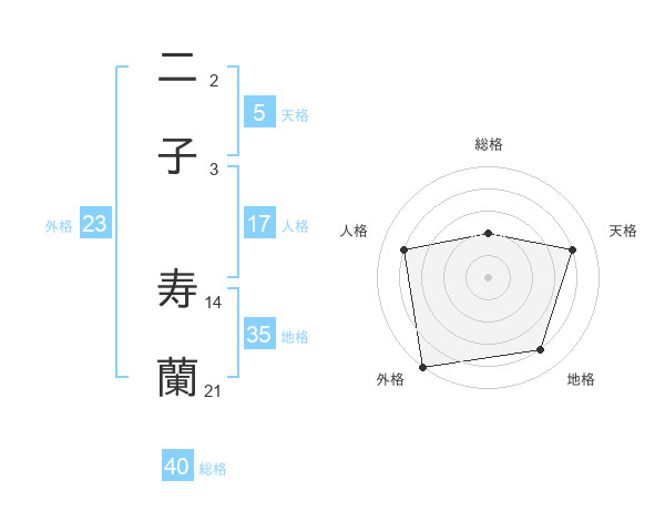二子 寿蘭さんを姓名の画数から五運を鑑定