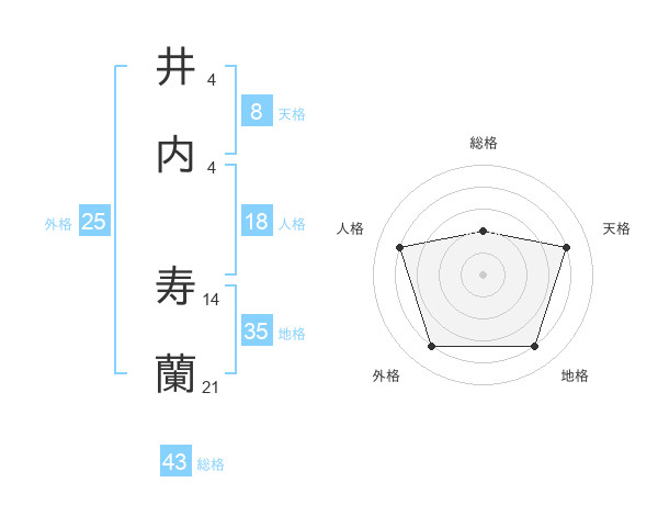 井内 寿蘭さんの総格は43画の2点!