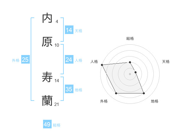 内原 寿蘭さんの総格は49画の2点!