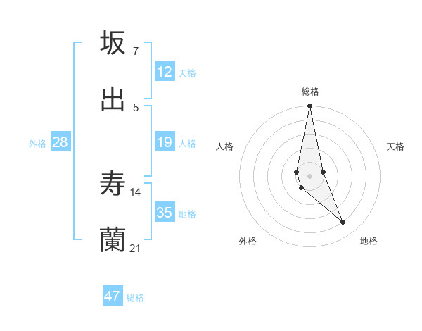 坂出 寿蘭さんの総格は47画の5点!