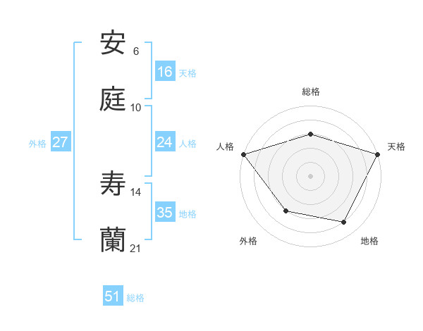 安庭 寿蘭さんの総格は51画の3点!