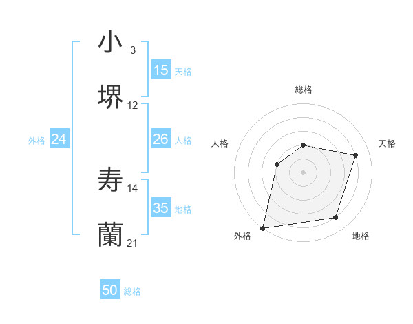 小堺 寿蘭さんを姓名の画数から五運を鑑定