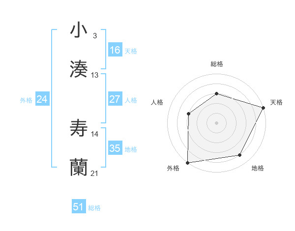 小湊 寿蘭さんの総格は51画の3点!