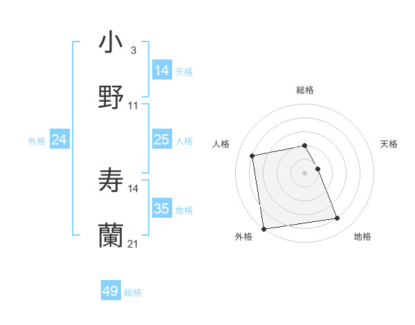 小野 寿蘭さんを姓名の画数から五運を鑑定