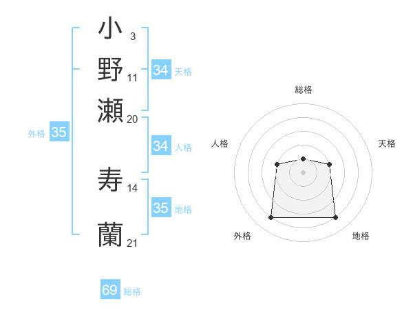 小野瀬 寿蘭さんの外格は35画の4点!