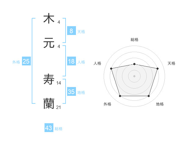 木元 寿蘭さんの総格は43画の2点!