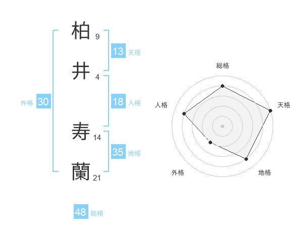柏井 寿蘭さんの天格は13画の5点!