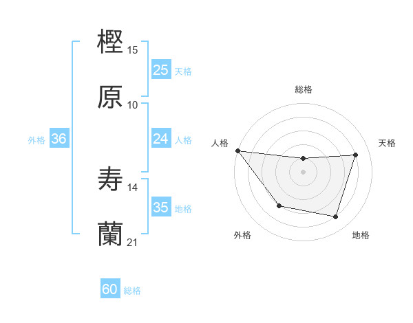 樫原 寿蘭さんを姓名の画数から五運を鑑定