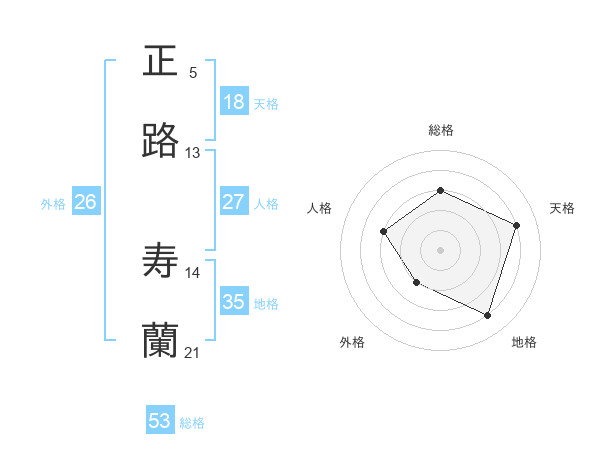 正路 寿蘭さんの総格は53画の3点!