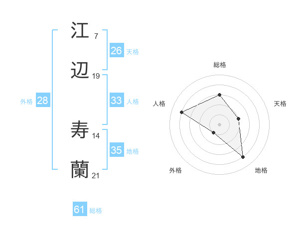 江辺 寿蘭さんの総格は61画の3点!