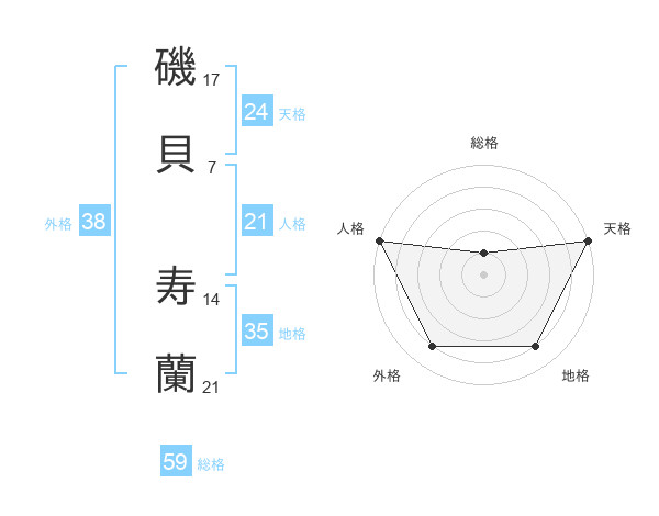 磯貝 寿蘭さんの天格は24画の5点!