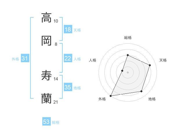 高岡 寿蘭さんを姓名の画数から五運を鑑定