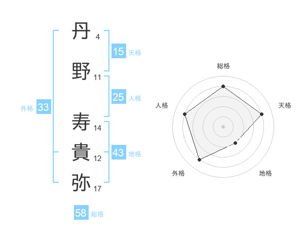 丹野 寿貴弥さんを姓名の画数から五運を鑑定