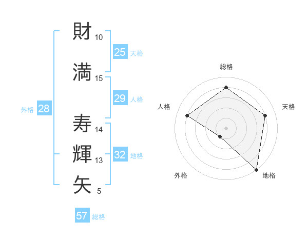 財満 寿輝矢さんを姓名の画数から五運を鑑定