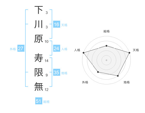 下川原 寿限無さんを姓名の画数から五運を鑑定