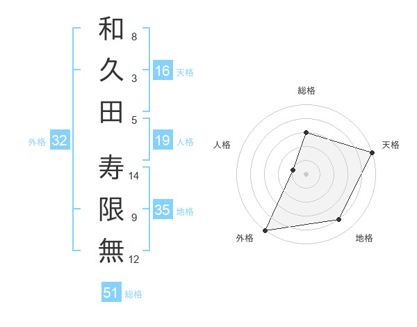和久田 寿限無さんを姓名の画数から五運を鑑定