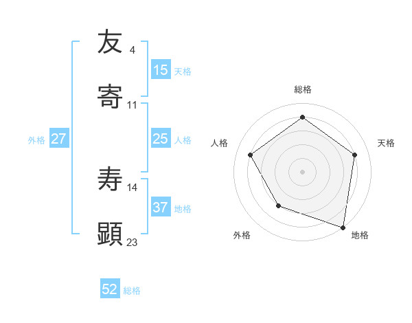 友寄 寿顕さんの総格は52画の4点!